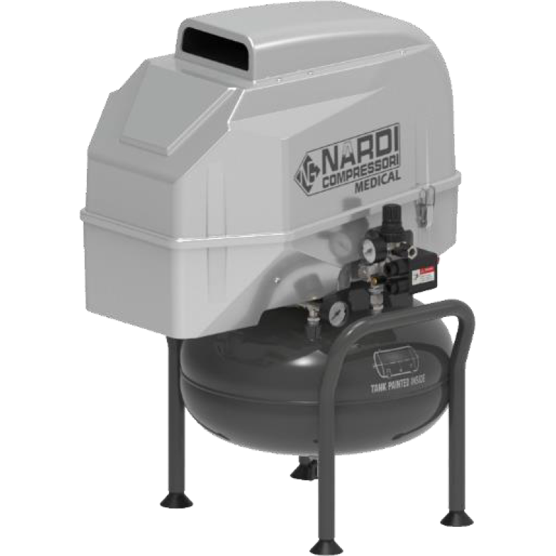 Diş muayenehaneleri, kimya laboratuvarları ve nemsiz, kurutucu karbonlu veya kurutucusuz hava isteyenler için, tank içi korozyona karşı boyalı, hava çıkışında küçük su ayırıcılı medikal kompresör. Kurutucu her şarjdan sonra aktif karbonu otomatik olarak yeniler. Sessiz ve sağlam, yüksek nemli yerlere bile yerleştirilebilecek şekilde tasarlanmıştır.